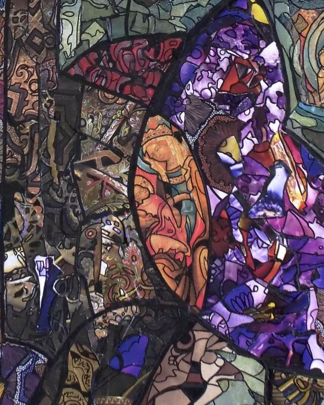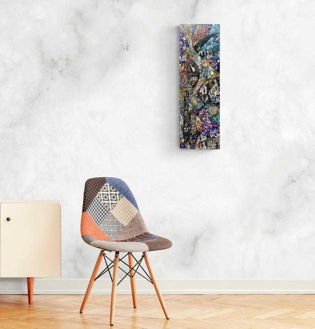 Tableau original 27 x 81 cm, acrylique et collages sur bois