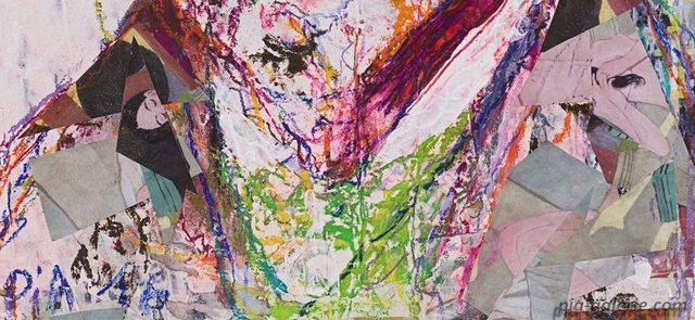 Tableau original 41 x 55 cm, pastels et collages sur papiers contrecollés
