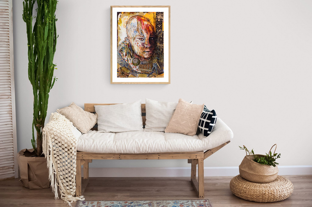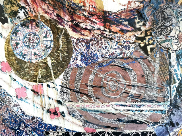 Tableau original 50 x 70 cm, acrylique, pastels et collages sur toile sur châssis