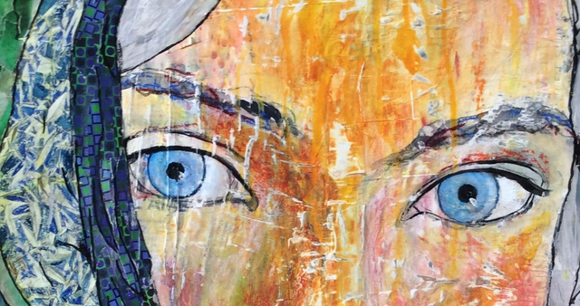 Tableau original 47 x 56 cm, acrylique, pastels et collages sur papiers contrecollés